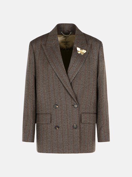 ZWEIREIHIGER NADELSTREIFENBLAZER AUS DUNKELBRAUNER WOLLE