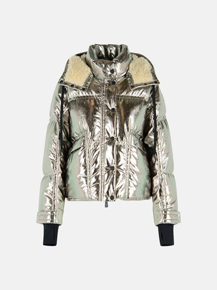 Removable covered hood, front snap button and zip closure, front pockets with snap button, adjustable drawstring at the hem, knitted cuffs
