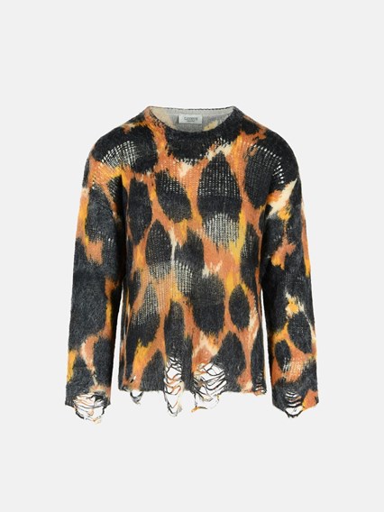 GEPUNKTETER PULLOVER "LEOPARD DESTROYED" AUS BABY-ALPAKAMISCHUNG