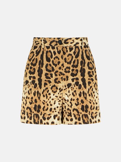 Gürtelschlaufen, Leopardenmuster, Knopf- und Reißverschluss, seitliche Eingrifftaschen, umgeschlagener Saum
