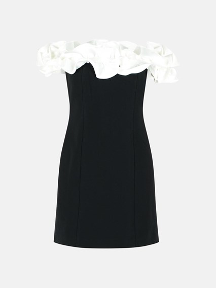 MINIKLEID MIT RÜSCHEN AUS SCHWARZ-WEISSEM POLYESTER