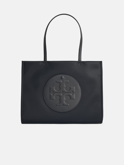 Double handle, tonal front pocket with snap button, magnetic closure, inner flat pocket, inner back zip pocket, bio based leather details\n34 x 26.5 x 11 cm