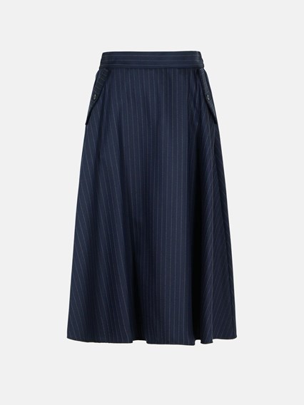 PINSTRIPED SKIRT IN MIDNIGHT BLUE WOOL