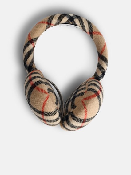 'CHECK' EARMUFFS IN WOOL AND SAND CASHMERE