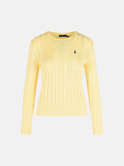 Knitted with braided finish, ribbed crew neck, contrast blue logo embroidery on the chest, ribbed hem and cuffs
