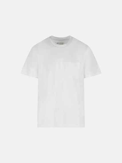Girocollo a costine, tasca applicata sul petto, vestibilità comoda, effetto lucido superficiale, impunture bianche posteriori