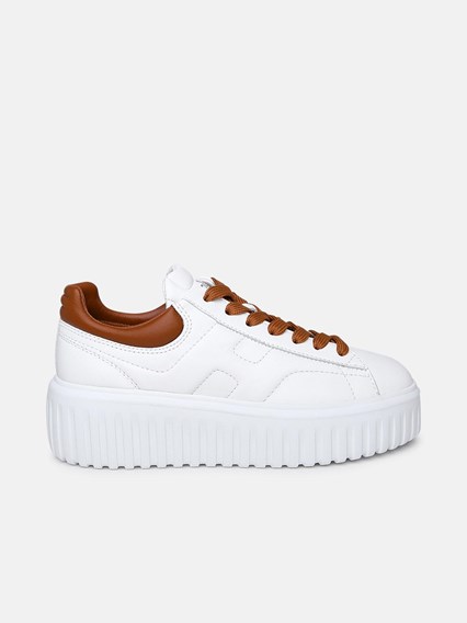Linguetta con stampa logo, H laterale imbottita, talloncino a contrasto, logo sul retro, suola platform in gomma
