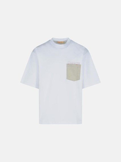 Girocollo a costine, tasca a contrasto applicata sul petto, logo 'Marni' con impunture rosse, orlo dritto
